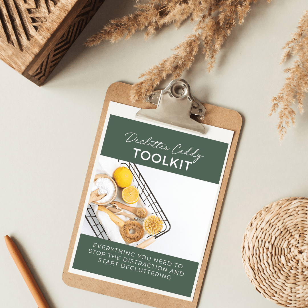 Get easily distracted while you declutter? Create a declutter caddy to keep you focused. The digital declutter caddy includes everything you need to stay focused as you declutter every area of your home with the Declutter Like A Pro Blueprint videos.