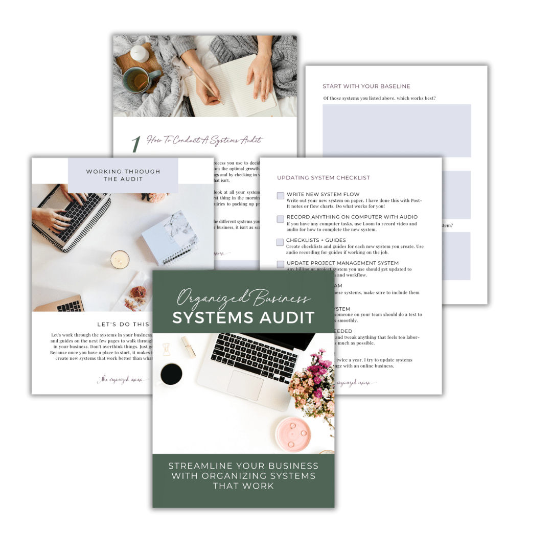 Every business has systems. But are they organized? The Organized Business Systems Audit walks you through an audit of each of your systems so you can streamline the process and get organized.