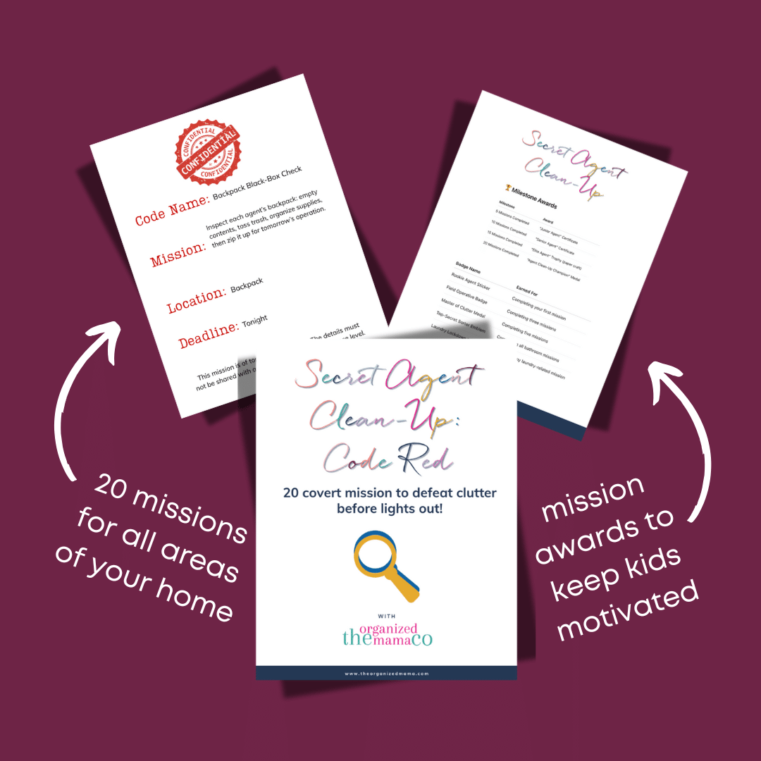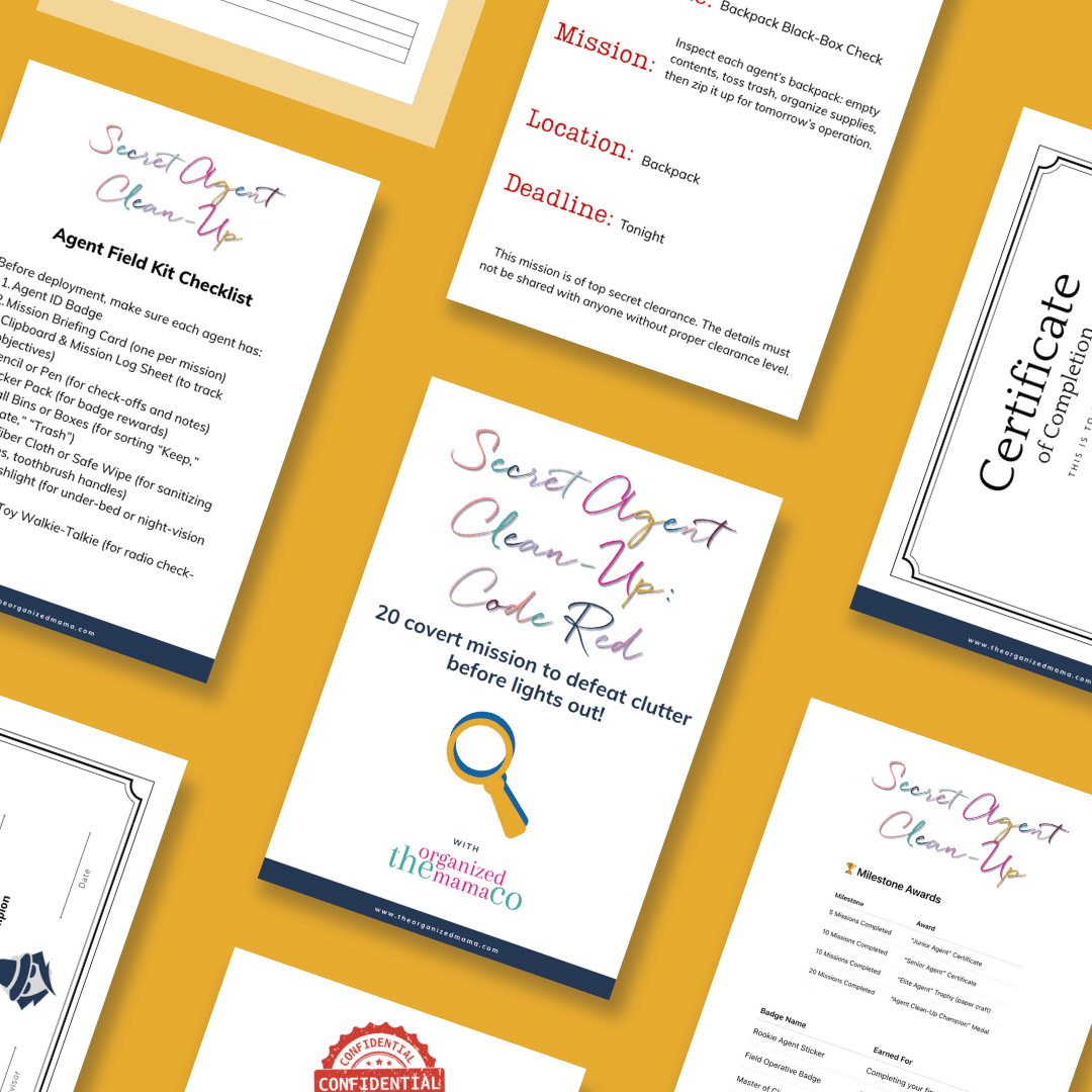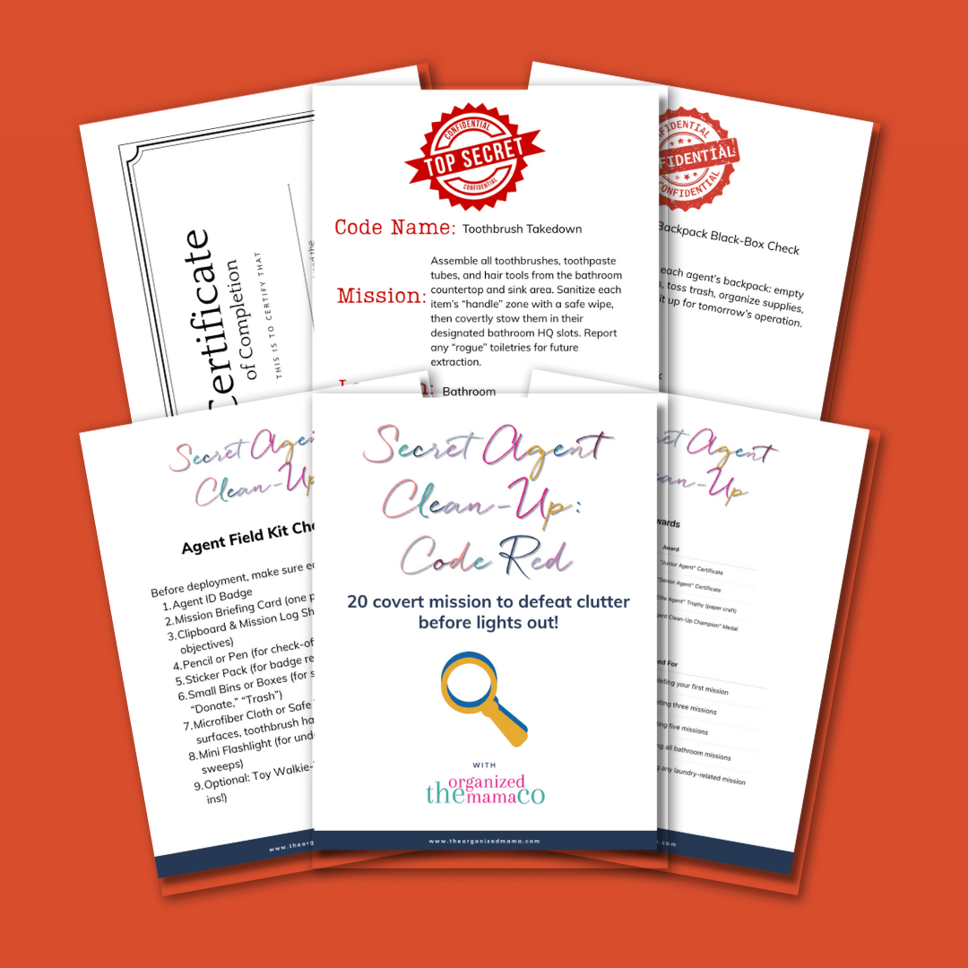 If your kiddos leave a trail of socks, toys, and mystery crumbs everywhere, and you’re tired of the battles, you’re gonna love this. Agent Clean‑Up: Code Red is a playful system that transforms everyday tidying into a secret‑agent adventure. No more nagging, no more fighting—just curious, confident kids who actually want to help. These spy missions were created to get kids to clean without fighting! And they work.