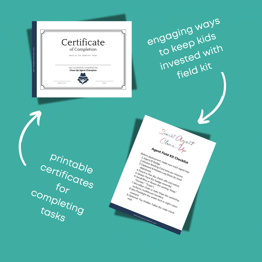 Frameable keepsakes for “Junior Agent,” “Senior Agent,” all the way to “Agent Clean‑Up Champion.”